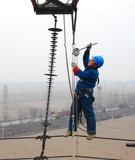 電力設施檢修電力工人攜帶鋁合金手扳葫蘆檢修作業...